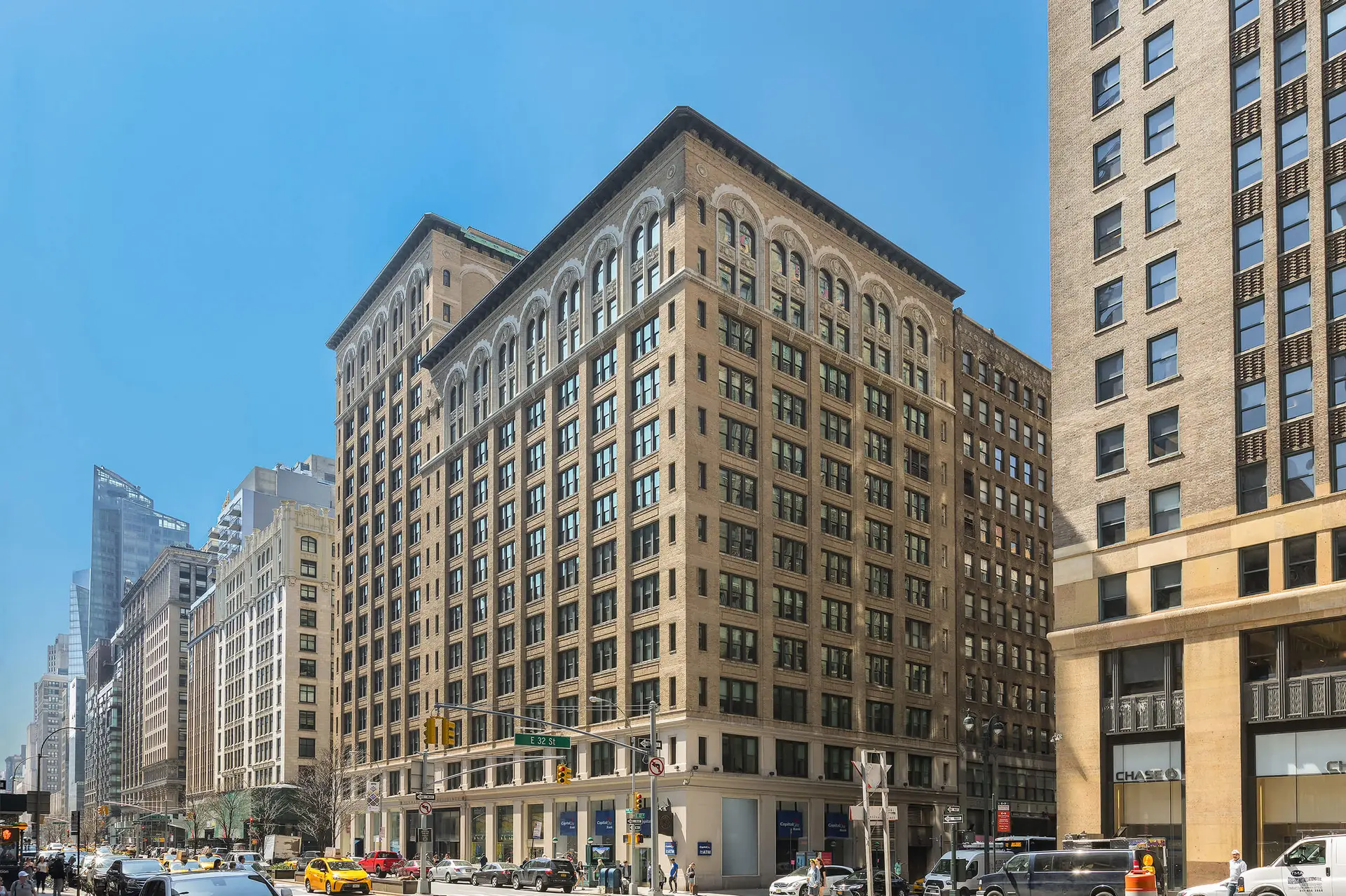 470 Park Avenue South combines modern aesthetics with pre-war architecture, offering over 300,000 square feet of office and retail space across two buildings. The north building, built in 1912 and the south building, built in 1925, span an entire block with 200 feet of frontage on Park Avenue South. The building has an amenity space on the ground floor which features a lounge, cafe, coffee bar with snacks and beverages, and an outdoor patio and fire pit. 470 Park Avenue South is centrally located within close proximity to major transit hubs and subway lines. The building offers views of New York landmarks such as Empire State Building, Chrysler Building, and Grand Central Terminal.